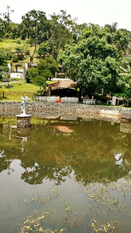 Maravilhoso sítio na Estrada do Rio Acima, á 600m do asfalto, com muita água, e uma excelente área de lazer. Casa sede com 02 dormitorios, sala, cozinha e banheiro, toda avarandada, mais uma casa com 01 suite grande com 04 beliches, salao de festas na frente da piscina, com espaço goumet completo com forno e fogao a lenha, churrasqueira e forno pizza e balcao de bar, piscina com cascata, campo de futebol, possui um lago de peixes, controle de altura da agua no centro do lago, na frente do lago possui mais um salao de festas com churrasqueira. Documentação Ok Escritura Registrada, vale a pena conferir! Um dos sítios mais lindos da região e um ótimo preço.
